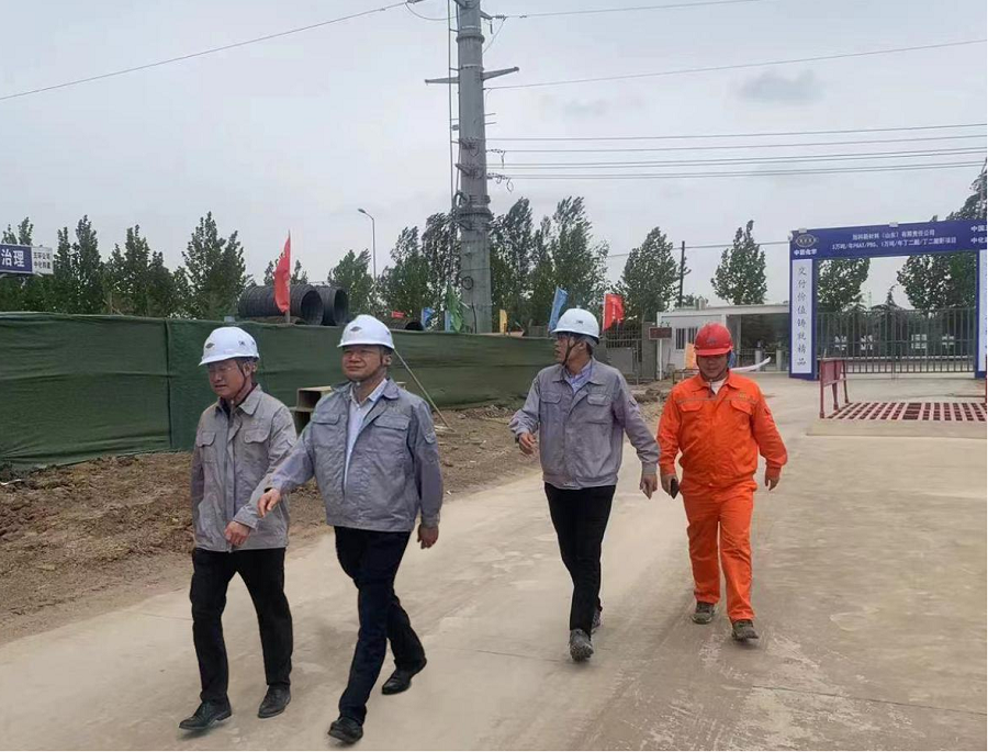 交流結束后,周鴻在項目經理張軍峰的陪同下來到旭科新材料項目(一期)施工現場,仔細查看了項目建設情況,詳細詢問項目安全生產建設、規范管理等情況,對項目安全、防疫等工作提出要求。他強調,項目部全體人員一是要提高政治站位,確保一手抓疫情防控不動搖,一手抓生產經營不動搖。二是項目部要立足自主創新,組織技術人員攻堅克難,做好丁二酸項目的新技術研發工作。三是要快速推動土建工程收尾工作,提前策劃推進安裝工程早日落地、早見實效。