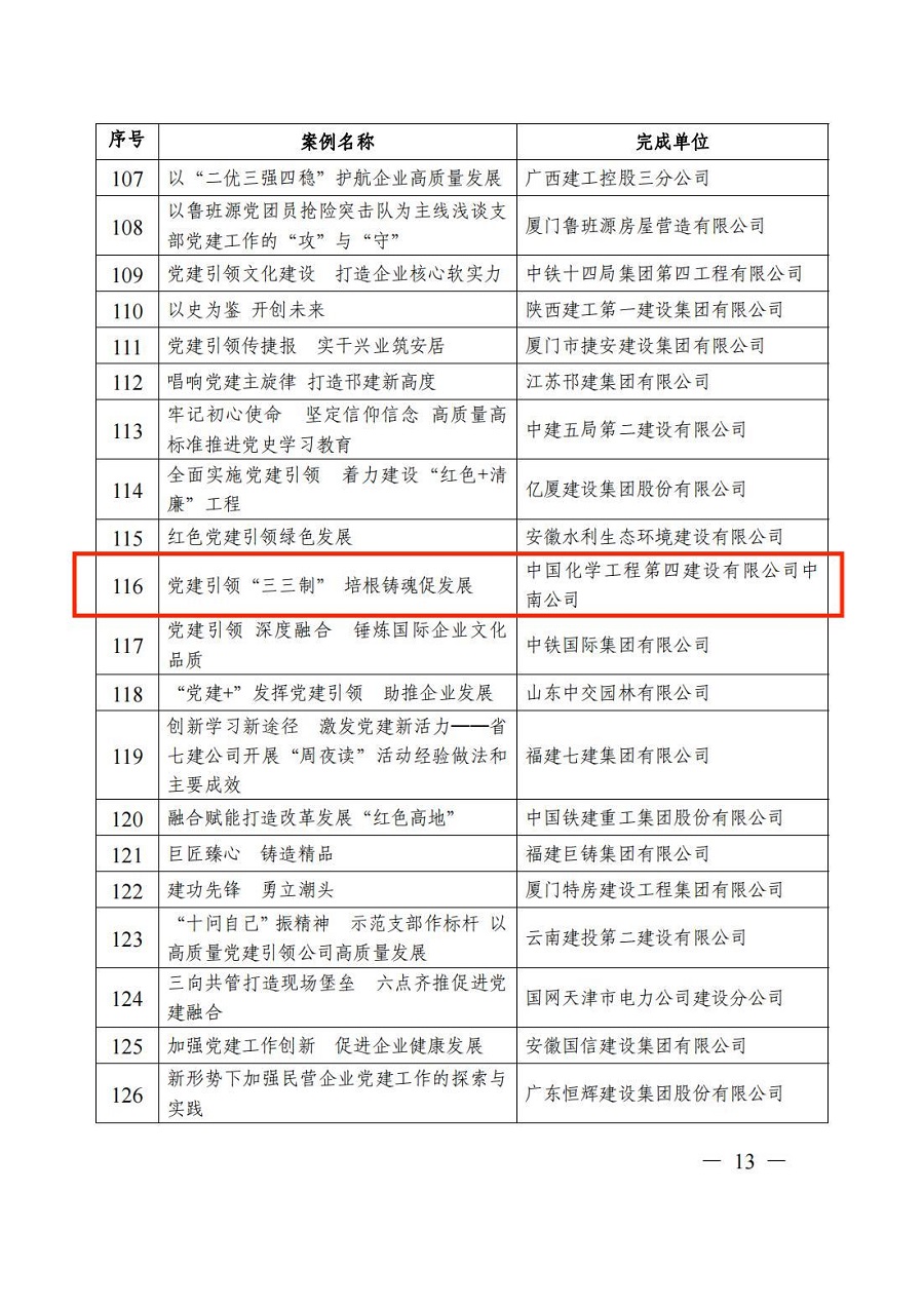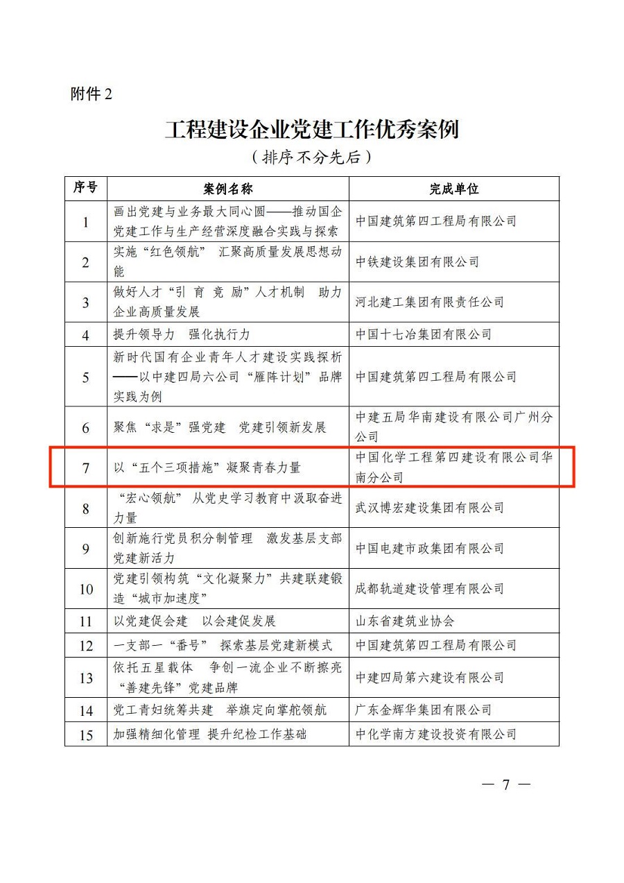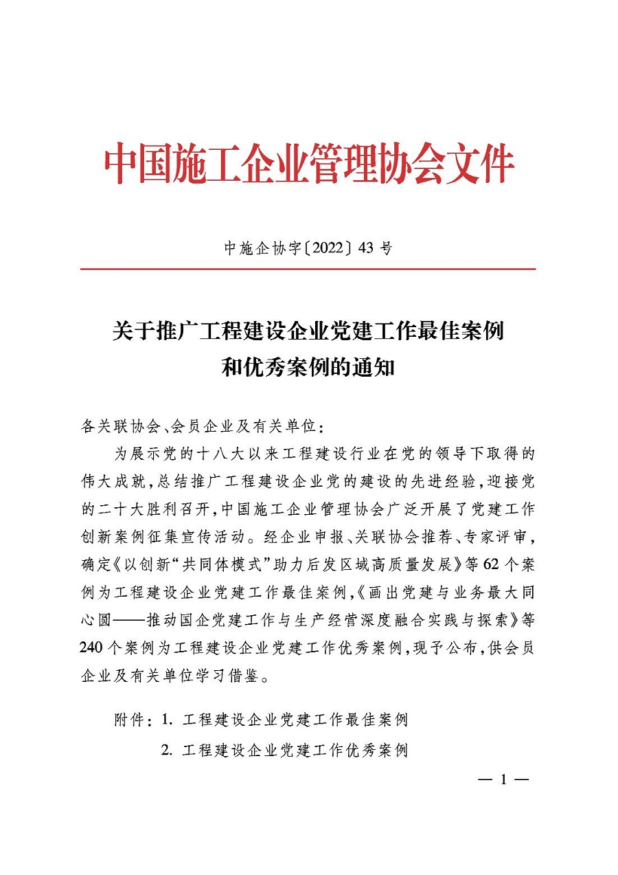 公司2項黨建工作案例獲評“工程建設(shè)企業(yè)黨建工作優(yōu)秀案例”