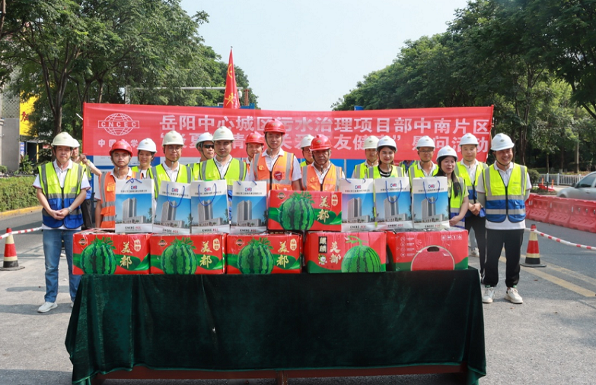 近日岳陽污水治理項目部在中南片區云夢路開展炎夏送清涼 關愛工友健康慰問活動,一線施工人員送上西瓜、夏桑菊顆粒等防暑降溫慰問品,同時詢問了工友們的工作和生活情況,對大家高溫天氣下堅守崗位、辛苦勞動的精神表示贊揚。