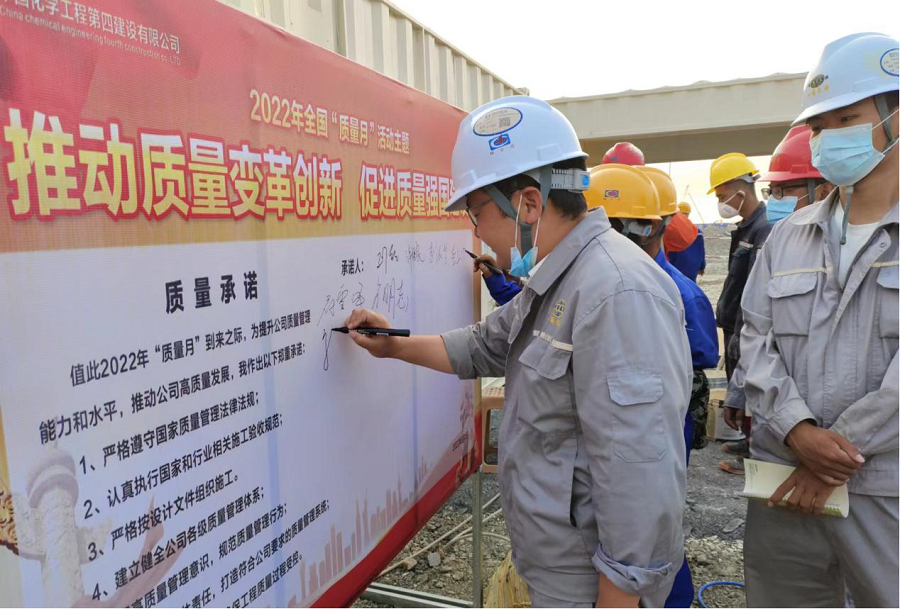9月5日,華北公司凱賽項目部舉行2022年“質(zhì)量月”活動啟動儀式。儀式上,安排部署了質(zhì)量月活動具體落實措施。會上要求,嚴格按照活動方案組織開展各項工作,營造人人關(guān)心質(zhì)量、人人重視質(zhì)量、人人提升質(zhì)量的濃厚氛圍,讓重視質(zhì)量、共管質(zhì)量成為工作常態(tài)。加強對施工重點環(huán)節(jié)的質(zhì)量管理檢查和控制,嚴把各階段質(zhì)量關(guān)口,切實提高工程實體質(zhì)量,努力打造“化建湘軍”央企品牌。現(xiàn)場全體人員在宣傳牌上簽名,共同作出堅守質(zhì)量底線、鑄造精品工程、助推企業(yè)高質(zhì)量發(fā)展的莊嚴承諾。(通訊員 萬江博 尹文煜)