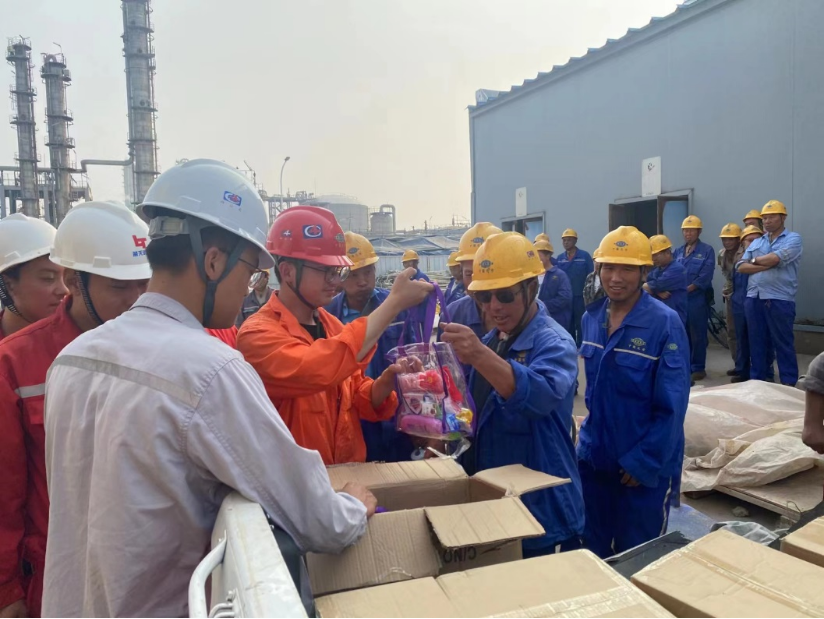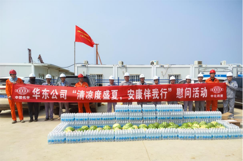 為切實(shí)保障酷暑時(shí)節(jié)一線職工的安全與健康,華東公司工會(huì)于近日在山東裕龍石化項(xiàng)目、西安西咸新區(qū)項(xiàng)目、大連恒力項(xiàng)目等多地開(kāi)展“夏季送清涼”慰問(wèn)活動(dòng)。