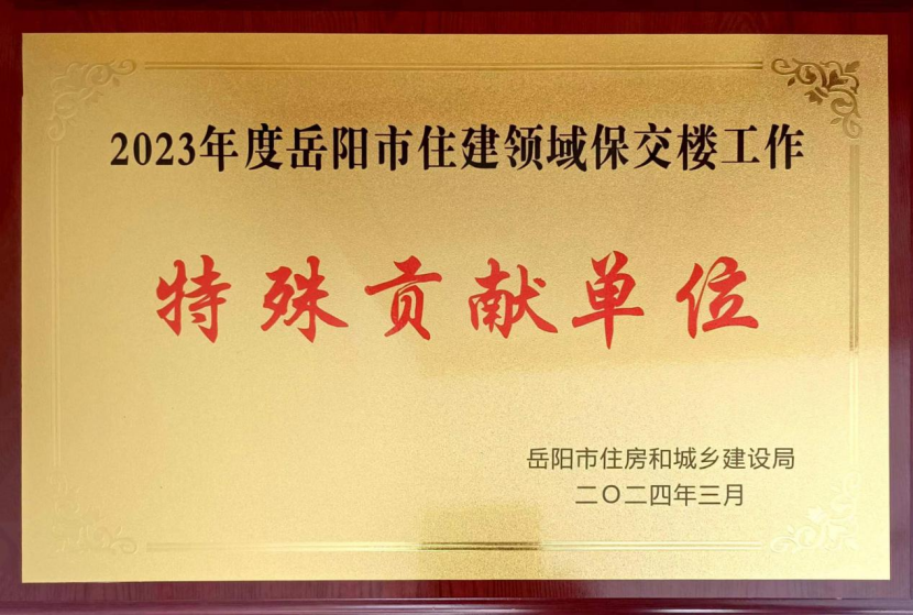 3月11日,在岳陽市住建局召開的全市住房城鄉(xiāng)建設(shè)工作會議上,公司榮獲2023年度岳陽市住建領(lǐng)域保交樓工作“特殊貢獻(xiàn)單位”稱號。