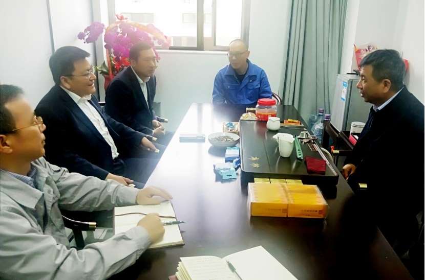 (圖為趙亮一行拜訪福建海泉化學(xué)有限公司董事長(zhǎng)何積庚)
