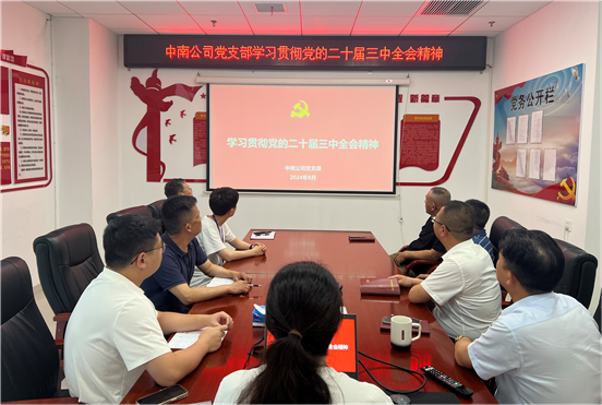 近日,中南公司黨支部召開理論學習會,傳達學習黨的二十屆三中全會精神。會議強調(diào),要深刻領會和把握進一步全面深化改革的主題、重大原則、重大舉措、根本保證,把學習貫徹全會精神與做好當前重點工作結(jié)合起來,堅持目標導向、問題導向,以釘釘子精神抓好重大改革任務貫徹落實,在公司高質(zhì)量發(fā)展進程中勇當先行者、譜寫新篇章、作出新貢獻。
