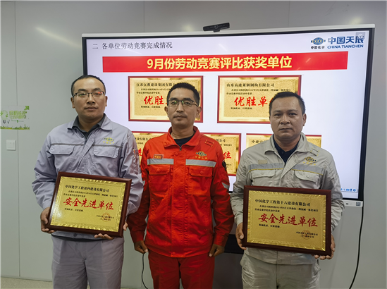 近日,在由中國化學天辰公司舉辦的9月勞動競賽中,華北公司承建的天津渤化二期氯堿一體化項目-公輔項目榮獲“安全先進單位”稱號。