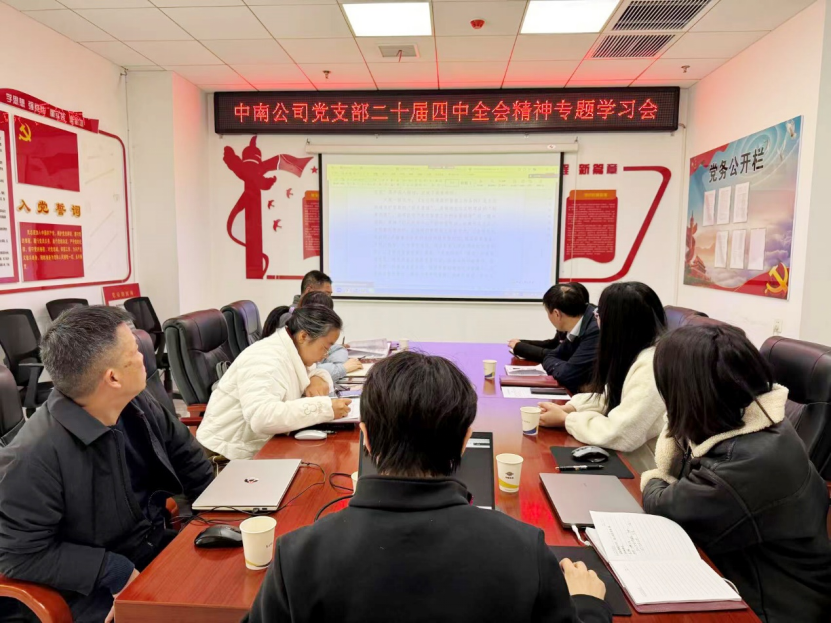 近日,中南公司黨支部組織召開黨的二十屆四中全會精神專題學習會,深刻領會全會精神實質,切實把思想和行動統一到黨中央決策部署上來。會議明確,要以貫徹執行為重要抓手,推動全會精神深度融入經營管理各環節;以創新驅動為突破路徑,聚焦技術攻堅與成果轉化提質效;以精益管控為堅實支撐,筑牢企業高質量發展的品質根基。同時,錨定重點項目攻堅主戰場,引領全體黨員干部在施工一線主動亮身份、鄭重踐承諾、帶頭作表率,切實將學習貫徹成效轉化為工程品質升級、企業效益攀升、改革發展提速的實際成果,為“十五五”規劃落地見效筑牢實踐根基、彰顯中南作為。