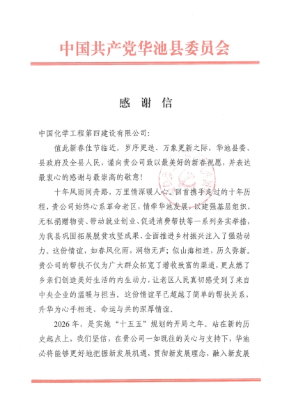 “貴公司的幫扶不僅為廣大群眾拓寬了增收致富的渠道,更點燃了鄉親們創造美好生活的內生動力,讓老區人民真切感受到了來自中央企業的溫暖與擔當。”近日,公司收到了一封來自甘肅華池縣委、縣政府的感謝信,字里行間滿是對公司定點幫扶工作的高度贊許。