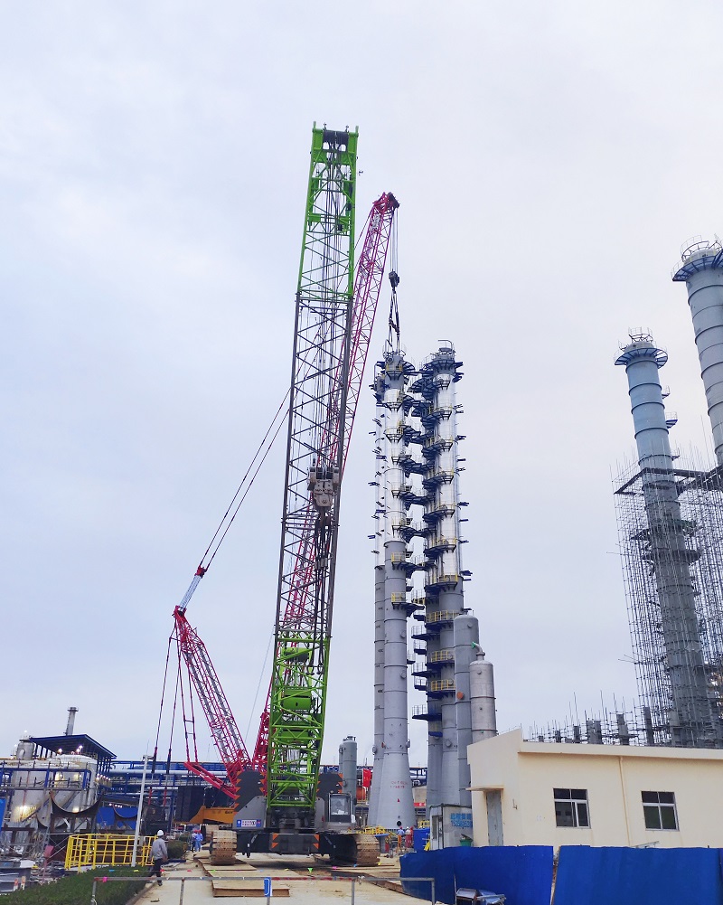 該項目大件設(shè)備共兩臺(T-602A/B),設(shè)備單重均為150噸。為順利完成此次吊裝任務(wù),項目部采用高強度大規(guī)格鋼絲繩,在確認(rèn)鋼絲繩額定負(fù)載和所有鋼絲繩完好情況下,現(xiàn)場多次進行起重低空試運行,確保一切正常后方正式起吊。在吊裝中,項目施工人員采用400噸和650噸兩臺履帶起重機,順利將大件設(shè)備吊裝就位,如期完成施工階段第一個關(guān)鍵節(jié)點,獲得業(yè)主、監(jiān)理的一致贊譽。(通訊員 孫善義)