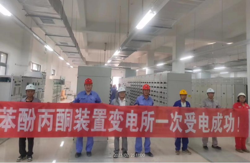 近日,由東北公司承建的大連恒力石化新材料項目苯酚丙酮裝置變電所一次受電成功。